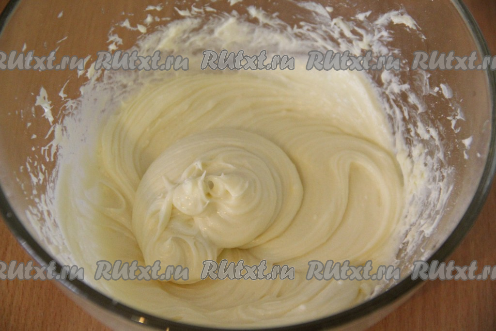 Творожный сыр нужен без добавок, обычный крем-чиз. В глубокой миске соединить творожный сыр с сахарной пудрой. Если нет сахарной пудры, можно её смолоть при помощи кофемолки или на крайний случай добавить аналогичное количество сахара.