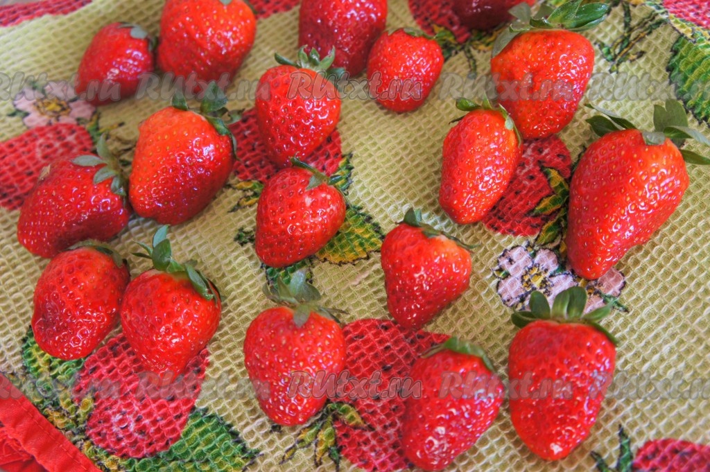 Подготовьте клубнику. Ягоды нужно выбирать крепкие, без повреждений. Листочки я оставила.