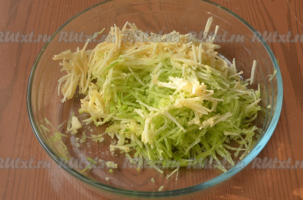 Затем яблоко и редьку натереть на крупной терке или на терке для корейской моркови.