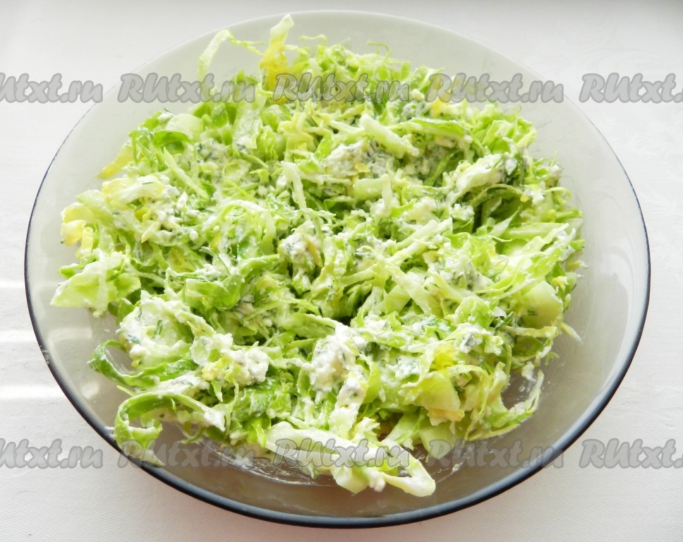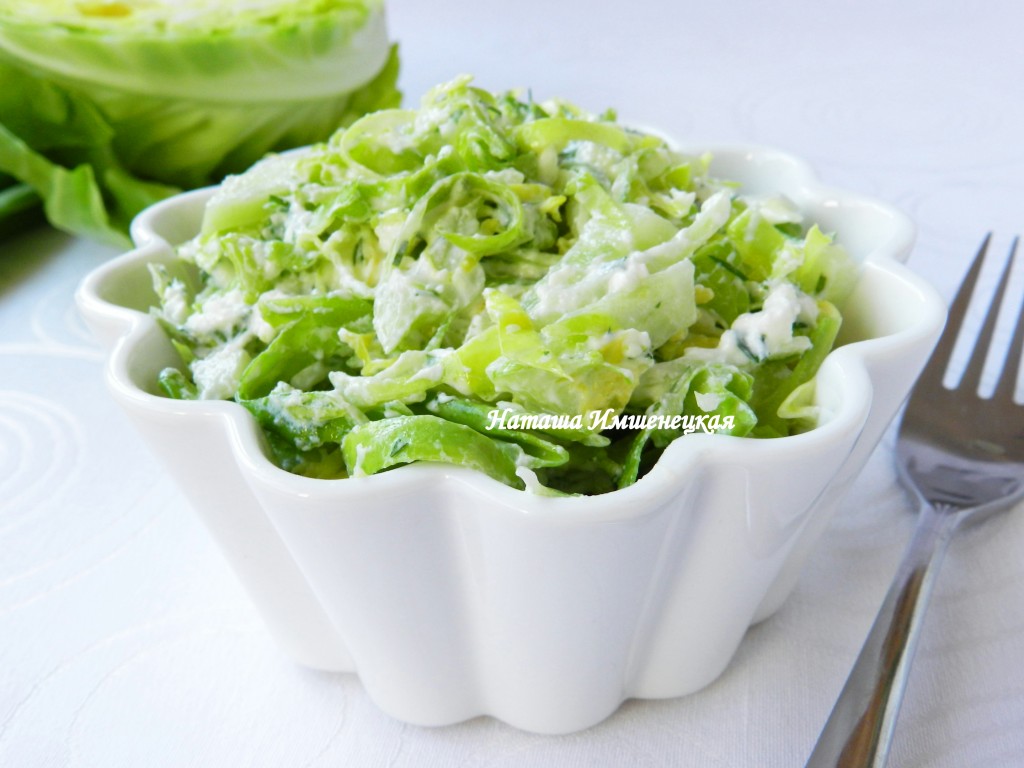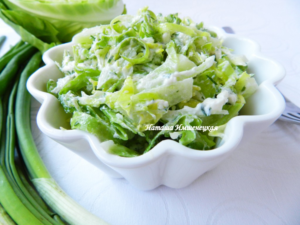 Хрустящий, сочный капустный салат готов. Благодаря заправке с сыром фета, блюдо получается и достаточно сытным, и очень вкусным, попробуйте!