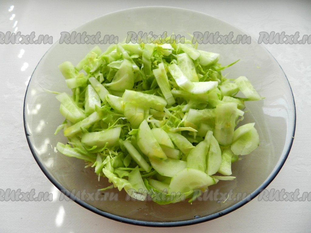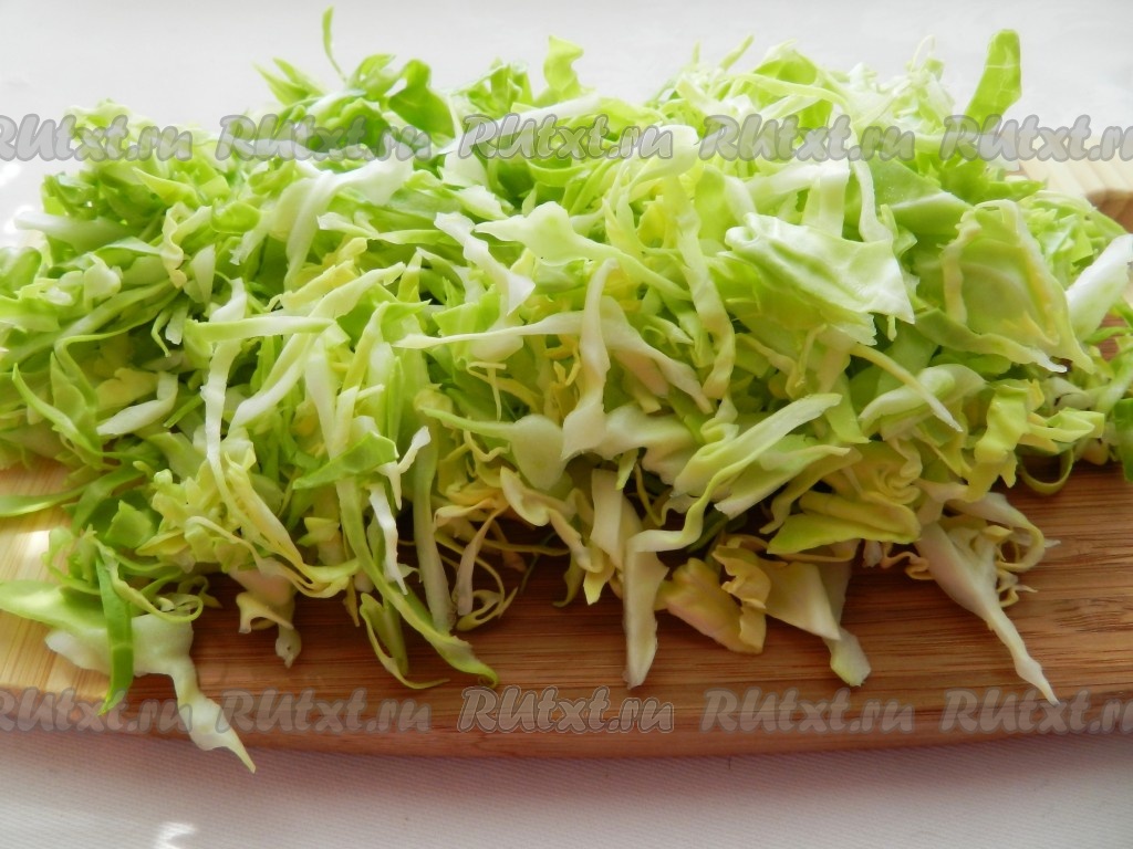 Капусту мелко нашинковать.