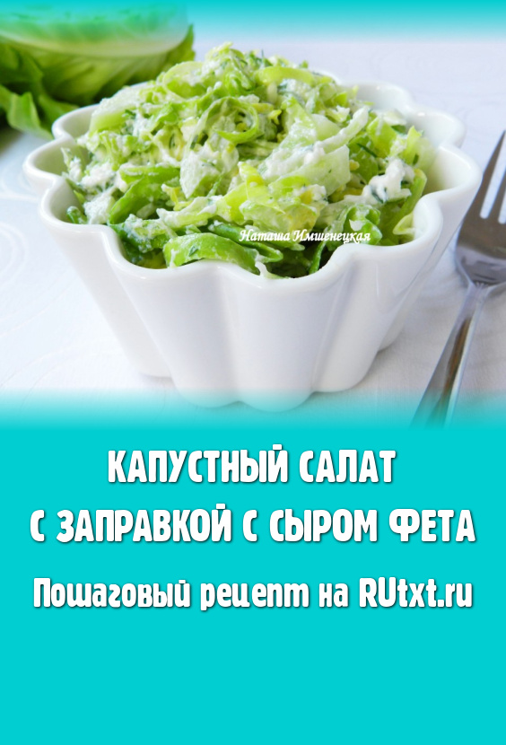 Капустный салат с заправкой с сыром фета - очень свежий, вкусный и хрустящий. Такой салатик можно приготовить из молодой белокочанной капусты или из пекинской. Пикантная заправка с сыром фета придаёт блюду особый вкус.