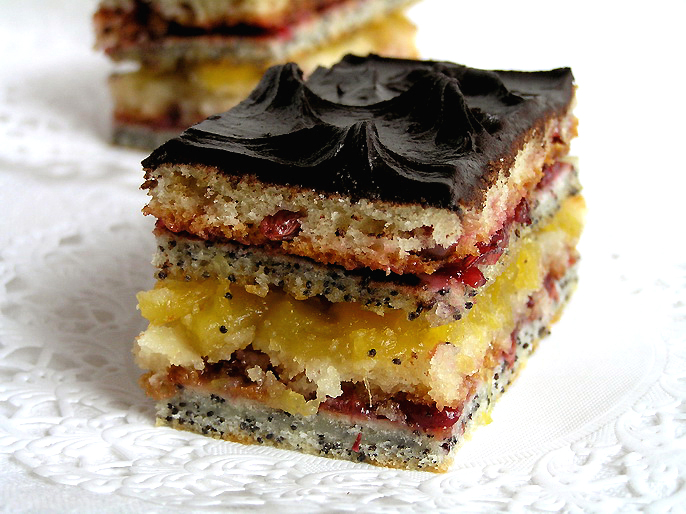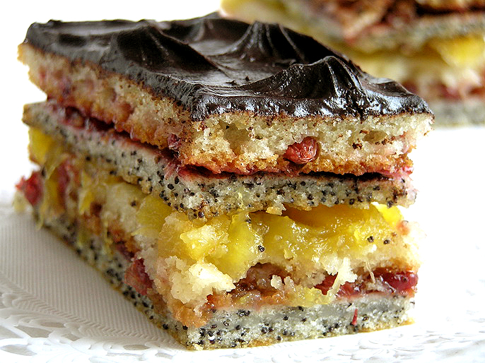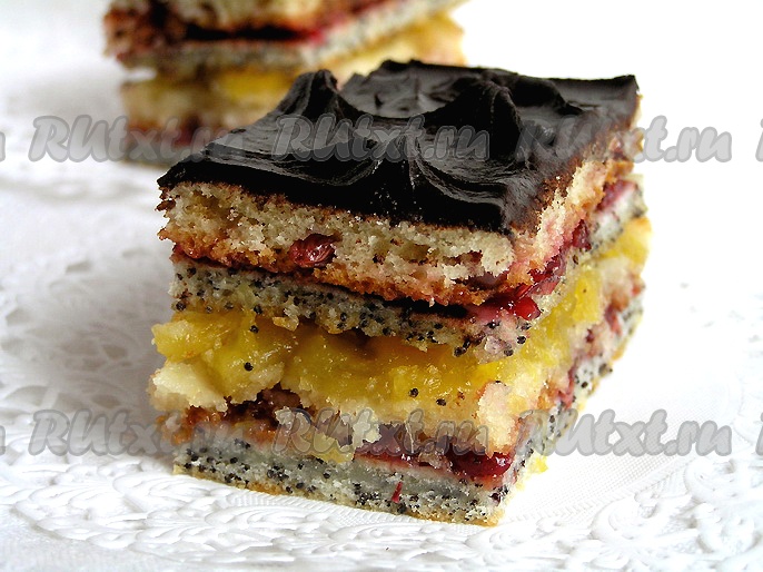 И даже в пост случаются праздники и дни рождения, которые можно и нужно отмечать в кругу семьи, поэтому без десерта не обойтись. Представляю Вашему вниманию необычное пирожное. В составе: маковый и клюквенный "бисквиты", прослойки из клюквенного соуса и ананасового джема, и в завершении - шоколадная глазурь. Не верите, что десерт постный? Убедитесь сами и попробуйте!