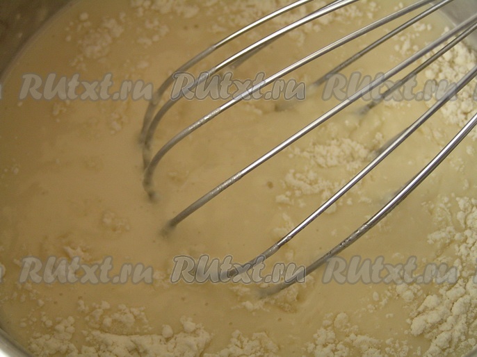 Постепенно влить воду и хорошенько перемешать до однородности.