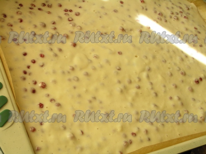 В ту же форму для выпечки выложить клюквенное тесто. Выпекать 35-40 минут при той же температуре.