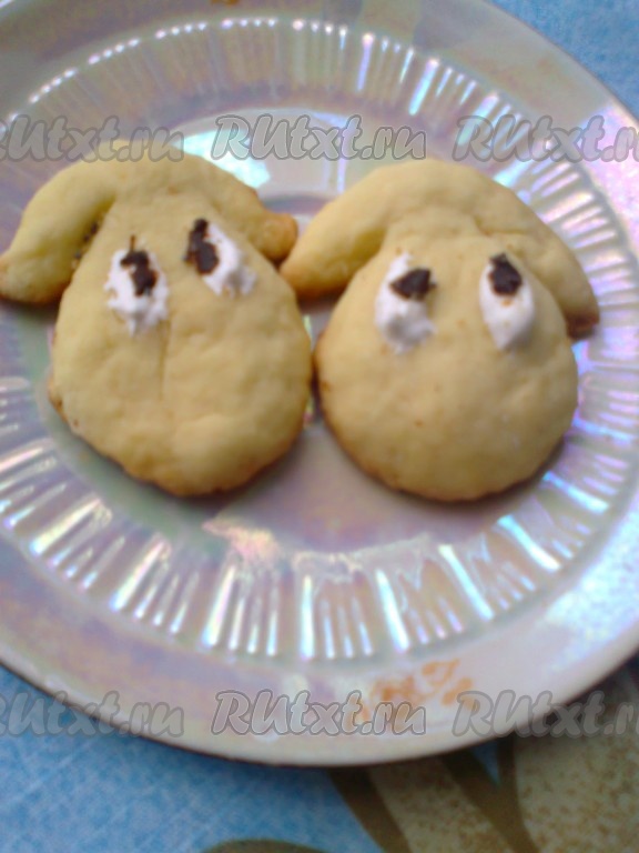 Испечь основу и мордочки в разогретой духовке 20 минут при температуре 200 градусов. Теста получается много, из этого количества я приготовила еще кроликов