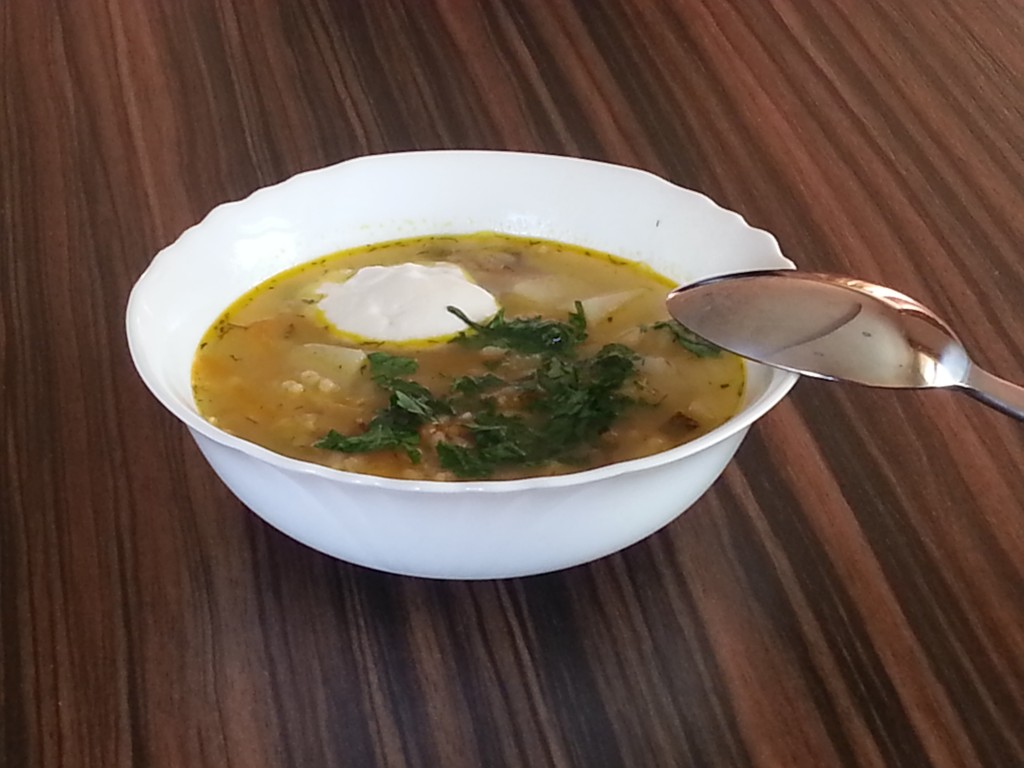 Среди моих любимых супов - рассольник. Поэтому, когда у меня после отделения мяса баранины от кости для чанах осталась одинокая косточка, я ее отварила и решила сделать именно рассольник с рисом, хотя во всех рецептах используется либо курица, либо говядина. И вопреки многим мнениям, мой суп получился изумительно вкусным (судила по пустым тарелкам).