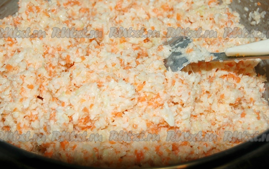 Соединить в миске капустную крошку с морковной.