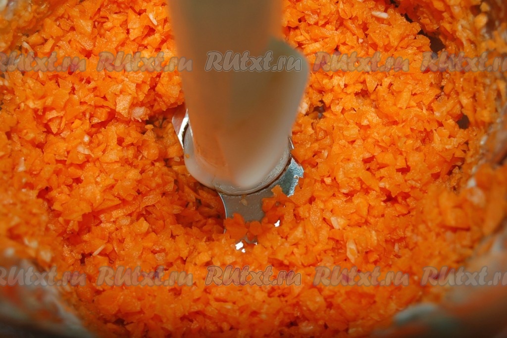 Кусочки моркови поместить в блендер.