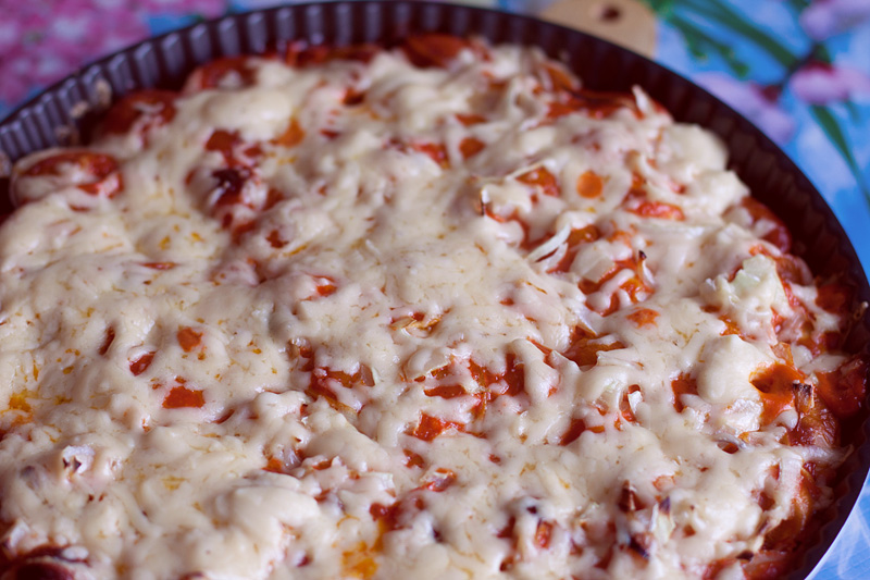 Как только пельмени запеклись, выньте их из духовки, присыпьте натертым на крупной терке сыром и снова уберите в духовку до момента, когда сыр расплавится.