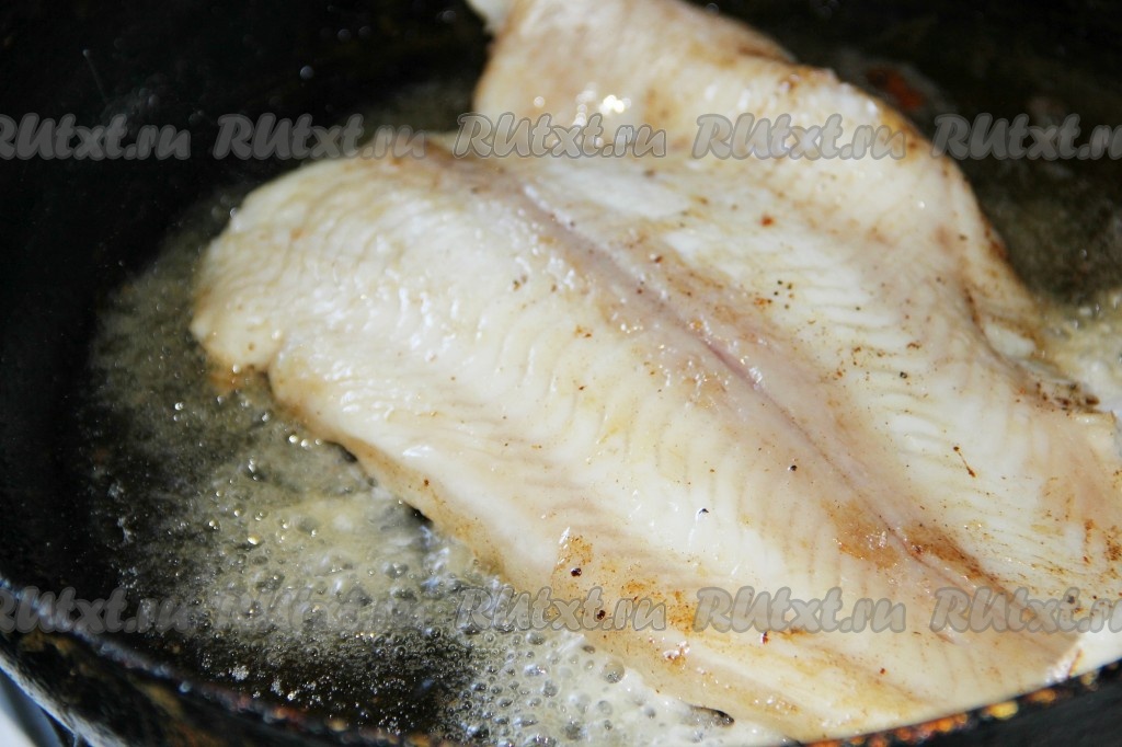 Первым делом филе рыбы обжарить целиком на растительном масле на сковороде на среднем огне до подрумянивания с двух сторон. Жарить рыбу до готовности не надо, филе должно слегка "схватиться". Рыбу со сковороды переложить на тарелку, а в растительное масло, в котором жарилась рыбка, выложить очищенную и мелко нарезанную луковицу, обжарить её, помешивая, до золотистого цвета.