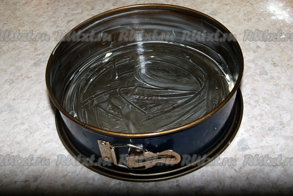 Форму смазать маргарином. Я взяла круглую форму, но хорошо подойдет продолговатая форма для кексов.