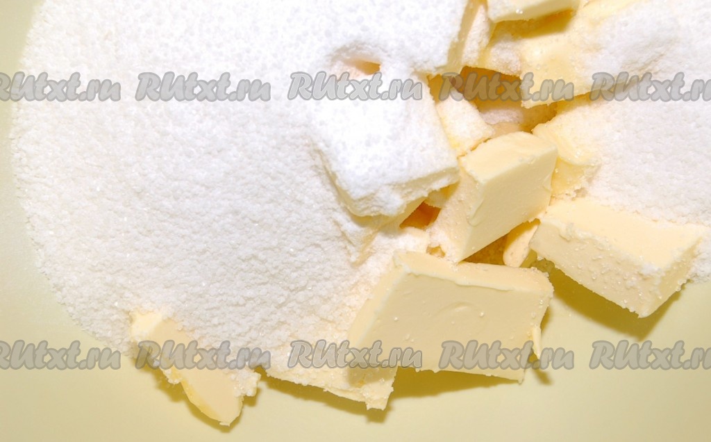Сахар смешать со сливочным маслом и взбивать до полного растворения сахара. Я измельчила сахарный песок в блендере почти до состояния сахарной пудры, что привело к быстрейшему растворению сахара и более нежному вкусу готового кекса.