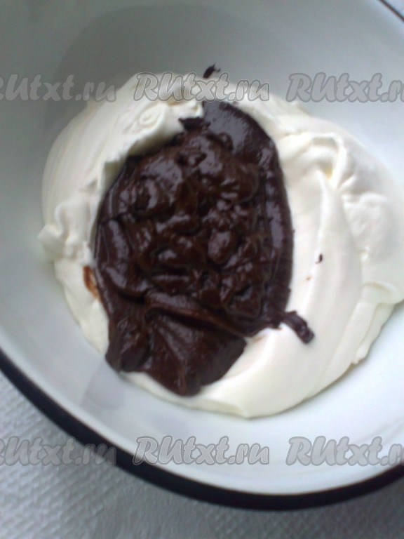 Затем соединить 1/3 всех взбитых сливок с шоколадной массой, аккуратно перемешивая.