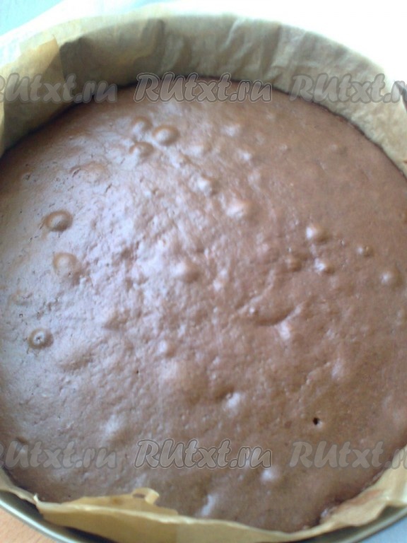 Готовый бисквит остудить до комнатной температуры, затем достать из формы.