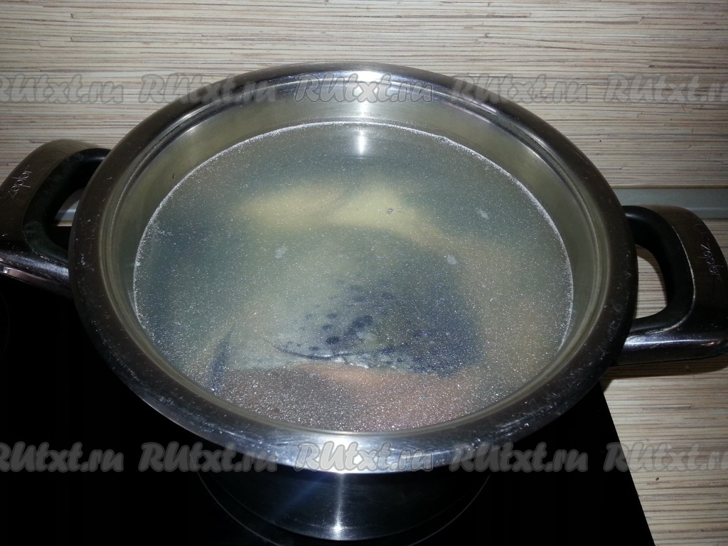 Поместить всю рыбу в кастрюлю, залить холодной водой и поставить на огонь.