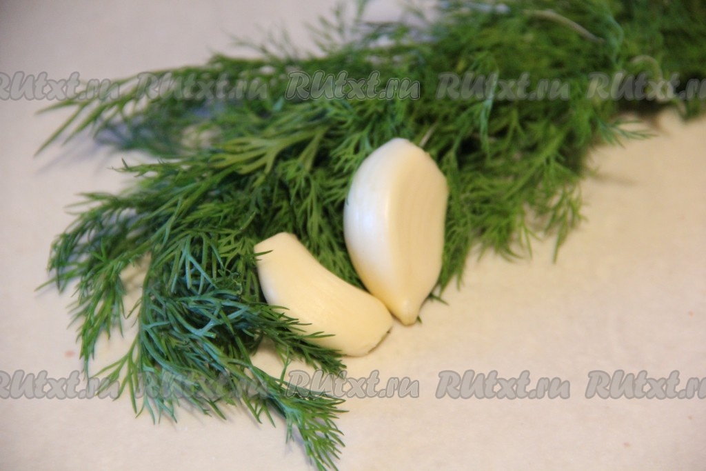 Чеснок очистить, пропустить через пресс. Укроп промыть водой, мелко нарезать.