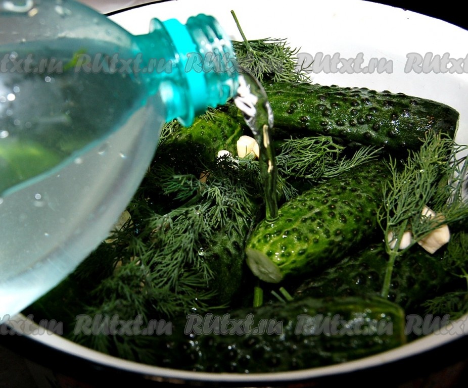 Через 12 часов можно снимать пробу наших аппетитнейших, ароматных малосольных огурчиков, приготовленных на минералке.