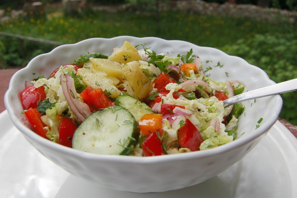 Вкуснейший, полезнейший и сытный летний салат с молодым картофелем готов.
