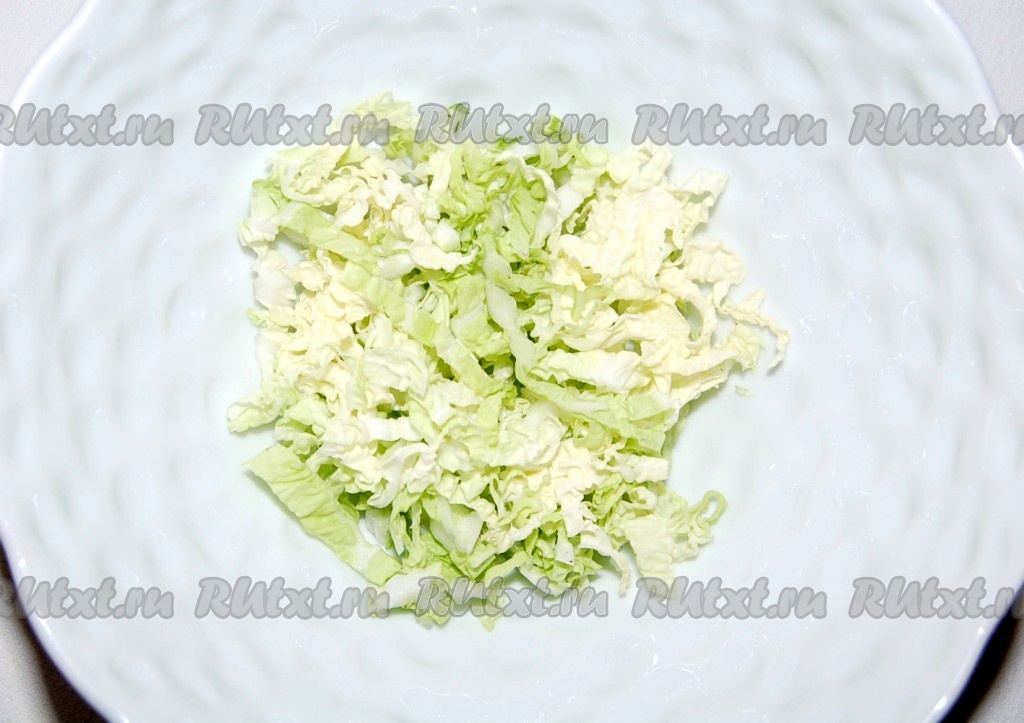 Сначала нарезать листовой салат.