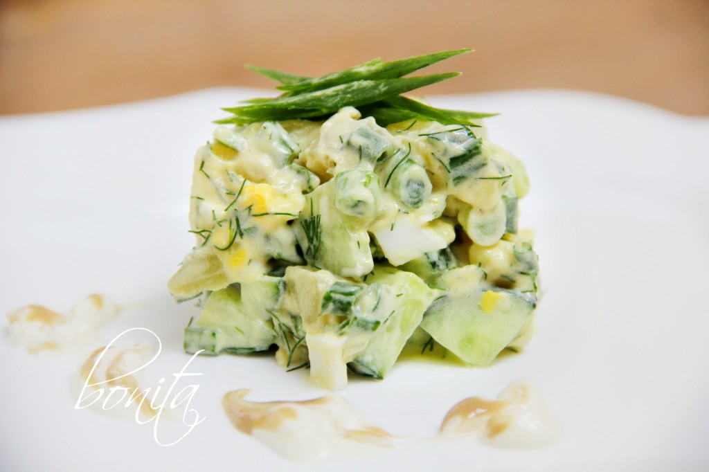 Салат с картофелем и свежим огурцом очень легкий в приготовлении, отличное дополнению к мясу или рыбным блюдам. Летом, в сезон огурцов и всевозможной зелени, это блюдо дополнит ваш стол и наполнит его летней свежестью и легкостью.