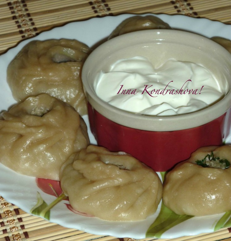 Когда позы будут готовы, осторожно вынуть их из пароварки и подавать на стол, дополнив сметаной. Очень вкусно, попробуйте!