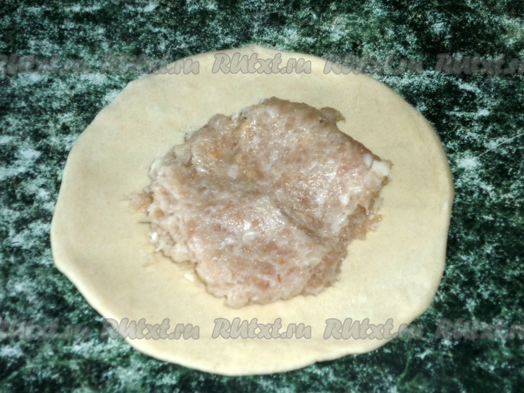 В центр каждого кружка выложить 1-1,5 столовых ложки фарша.