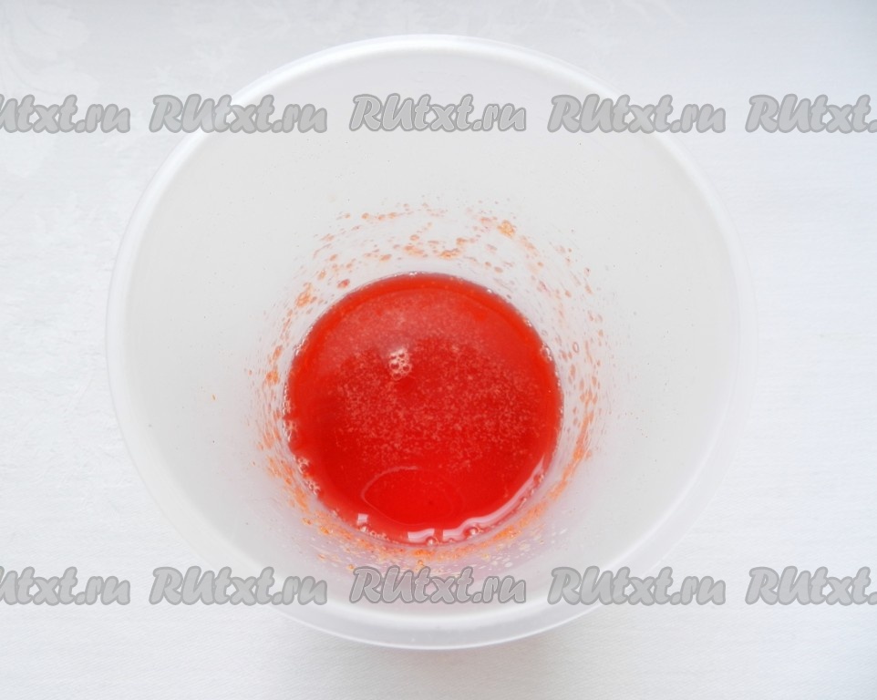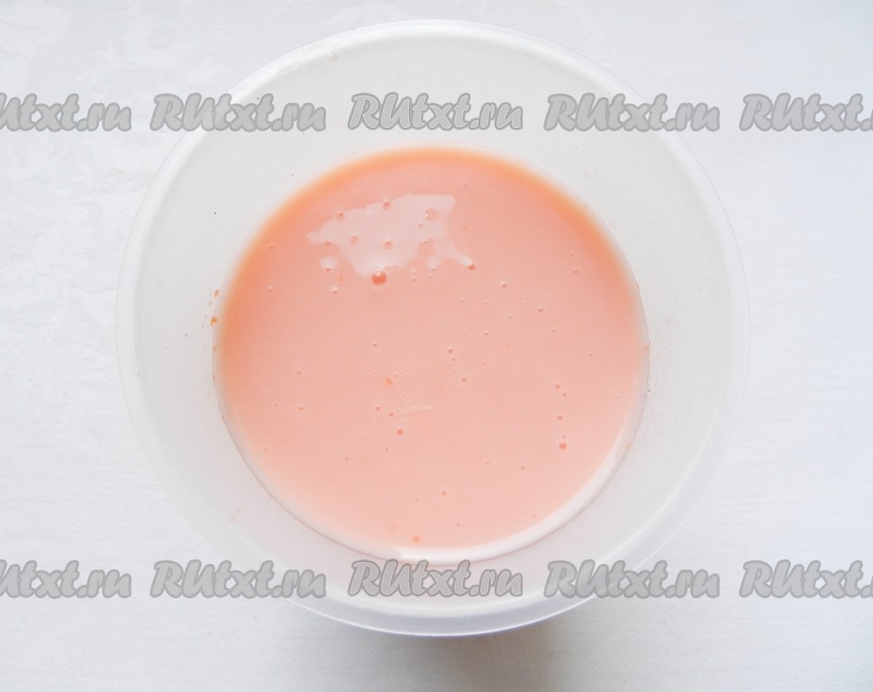 После того как клубничное желе застынет, вторую половину сухого порошка желе развести в 50 миллилитрах кипящей воды, немного остудить.