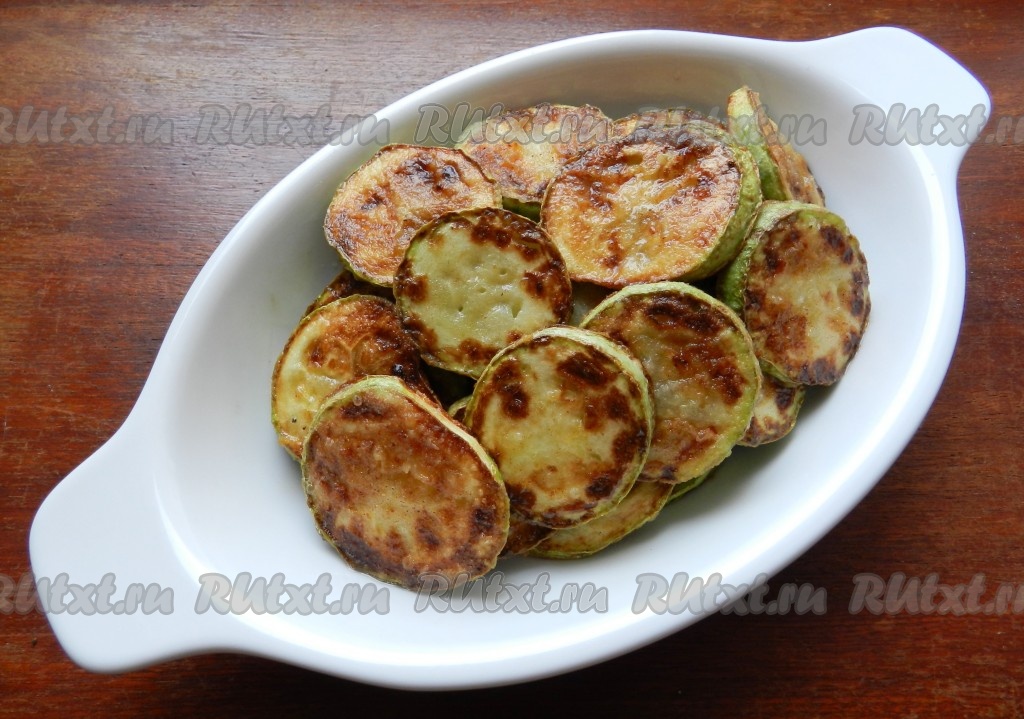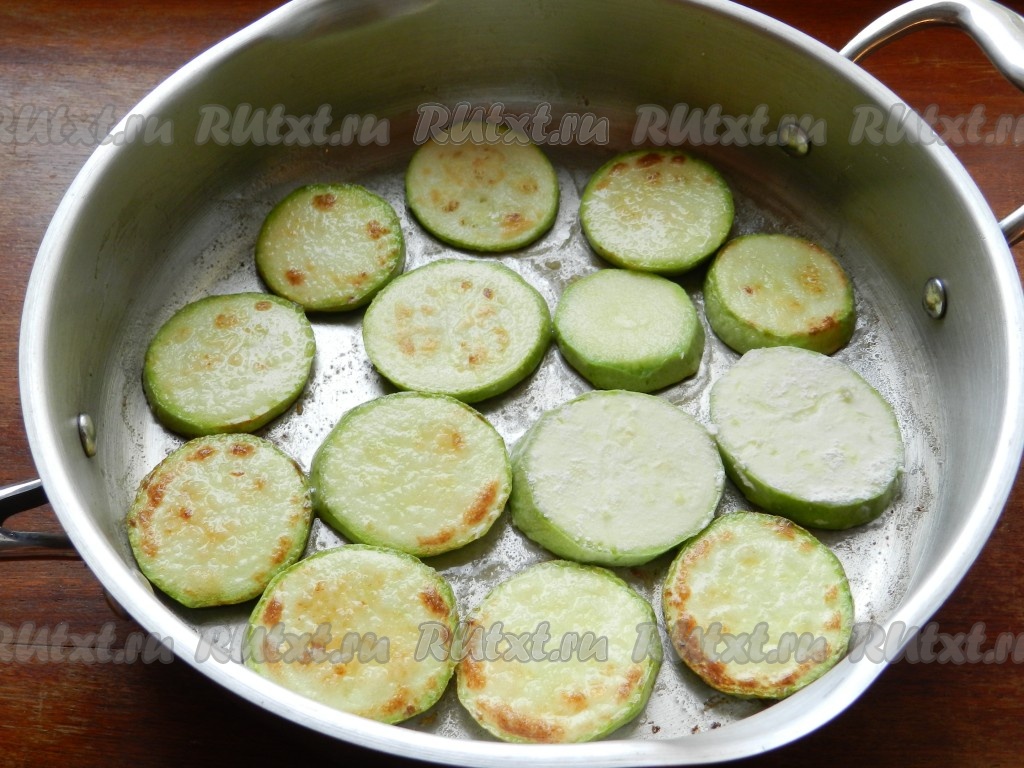 В сковороде разогреть растительное масло и обжарить кабачки на среднем огне сначала с одной, затем с другой стороны до золотистого цвета.