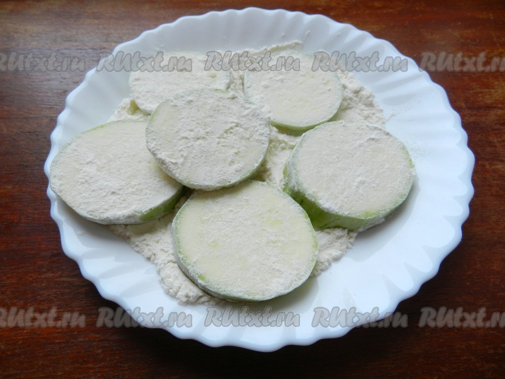 Муку смешать с солью. Кружочки кабачков обвалять в муке с обеих сторон.
