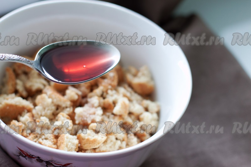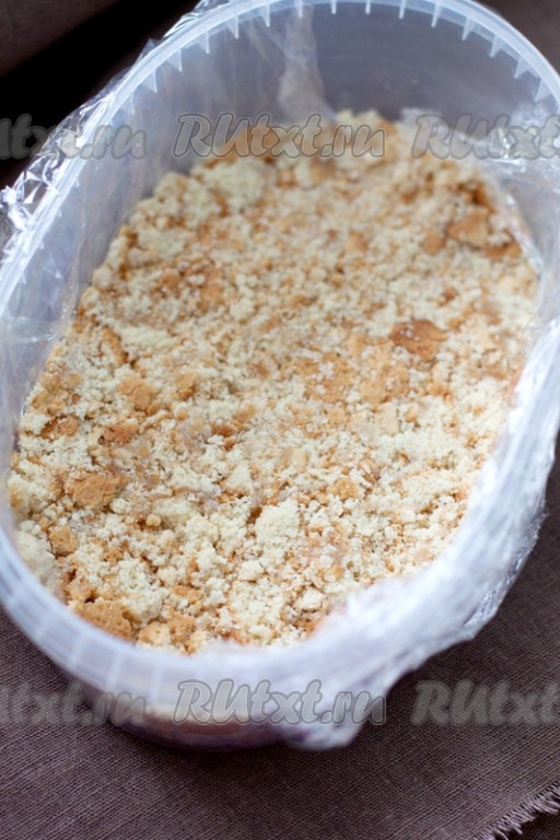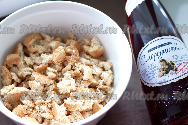 Наломайте печенье небольшими кусочками, смешайте с половиной порции (указанной в рецепте) ликера и оставьте минут на 10, чтобы бисквит пропитался.