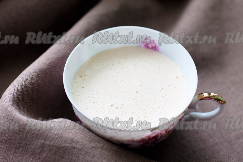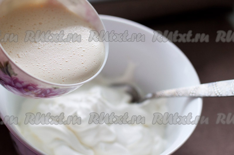 Взбейте желтки с сахаром и добавьте оставшуюся часть ликера. В другой посуде взбейте сливки в плотную пену.
