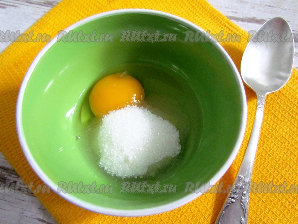 Яйцо взбейте вилкой с сахаром, солью и ванильным сахаром.
