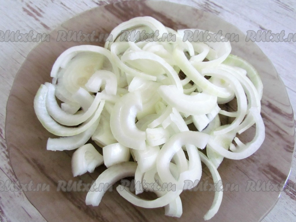 Лук очистите и нарежьте полукольцами.