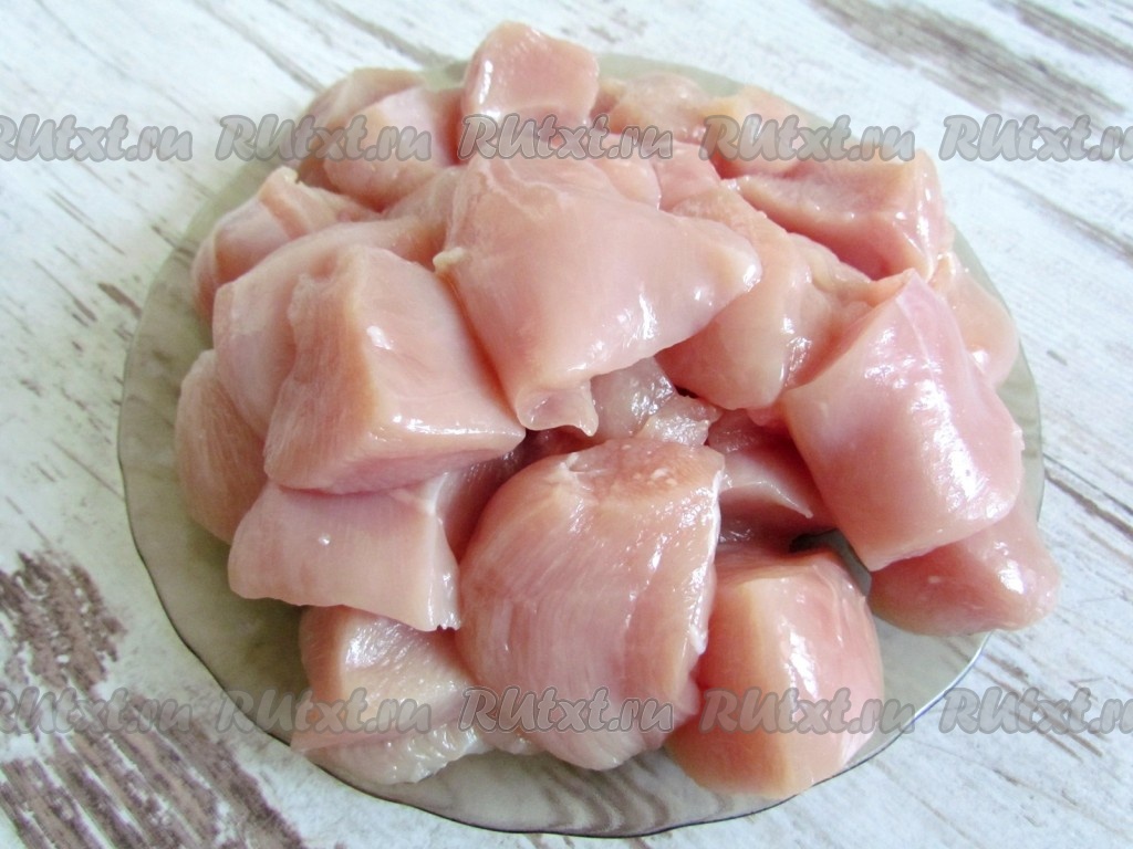 Нарежьте мясо на средние кусочки.