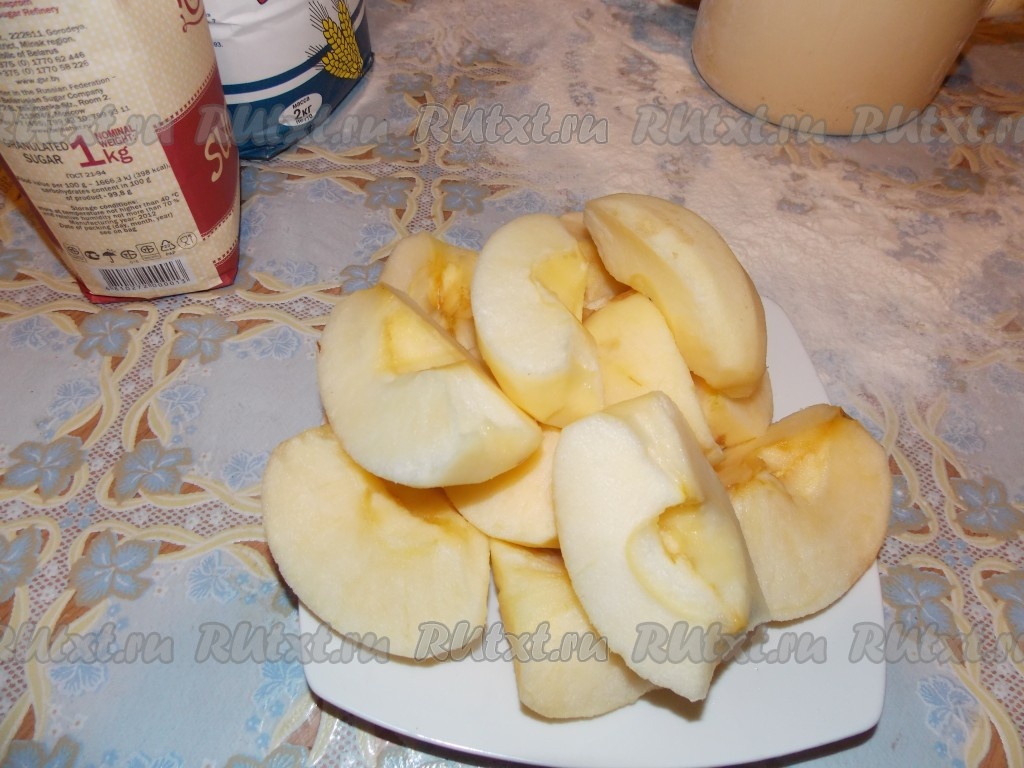 Яблоки нарезать.