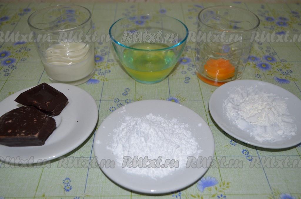 Смешиваем с молоком предварительно растопленный или измельчённый шоколад. Размешиваем, пока шоколад полностью не растает. Вводим желток и быстро перемешиваем, чтобы он не свернулся. Добавляем крахмал и тщательно перемешиваем массу. Оставляем шоколадную массу остывать при комнатной температуре.