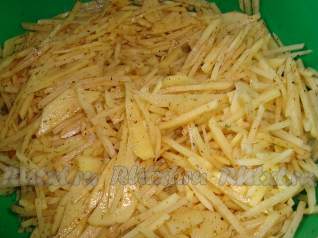 Картофель солим, перчим, приправляем любимыми специями, у меня паприка и укроп.