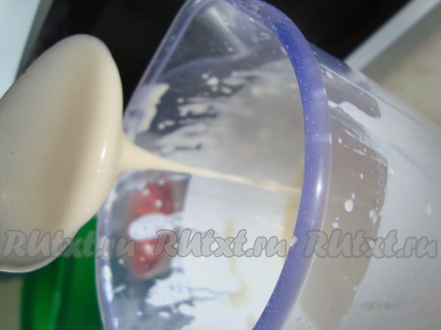 Приготовим тесто как на блины, для этого перемешиваем все ингредиенты для теста, я перемешивала венчиком. Тесто должно получиться жидким.