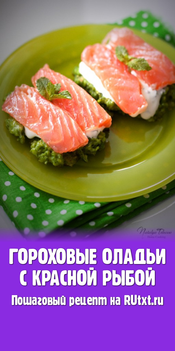 Украсьте готовые гороховые оладьи с красной рыбой листиками мяты. Приятного аппетита!