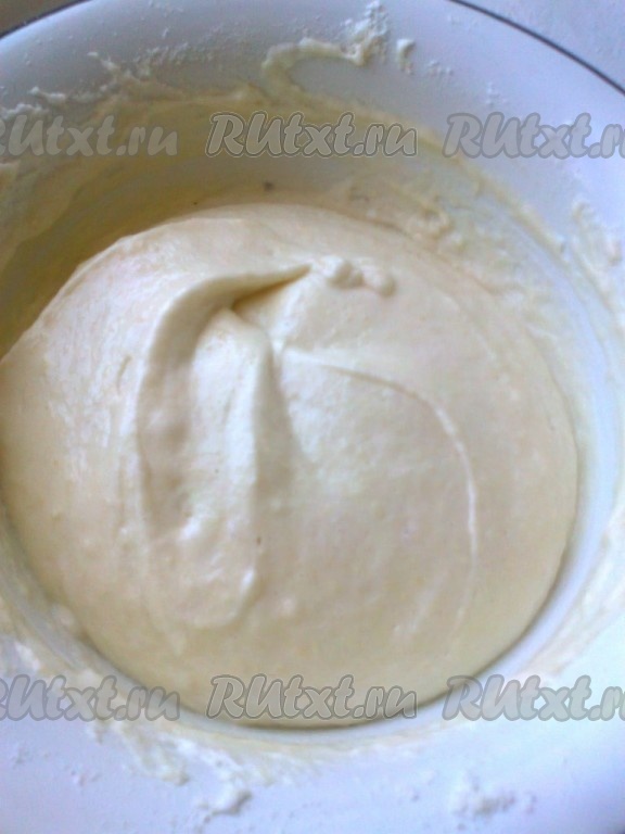 Аккуратно прибавим сахарно-миндальную смесь в белки, вымешивая тесто силиконовой лопаткой или столовой ложкой снизу вверх или круговыми движениями.