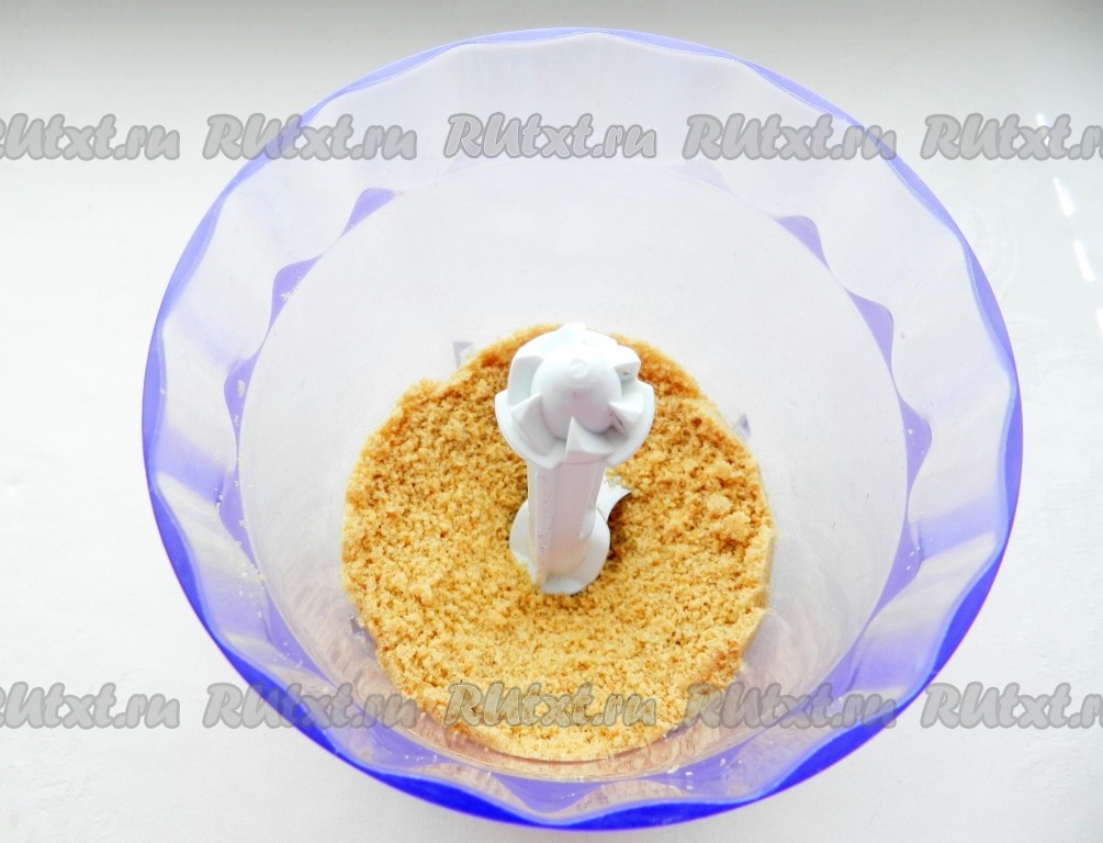 Печенье "Топленое молоко" измельчить в блендере в крошку.