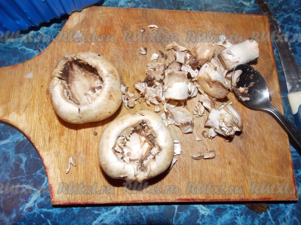 Шампиньоны промываем, затем вырезаем из них ножки.