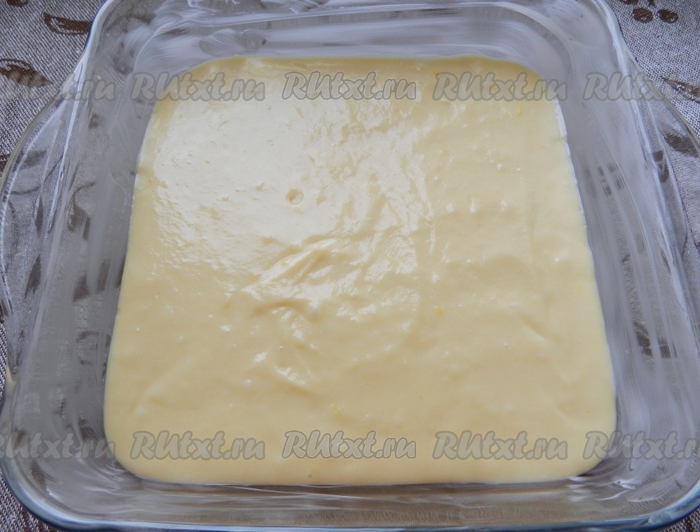 Форму для выпечки смазать маслом. Выложить тесто, лопаткой распределить его равномерно.