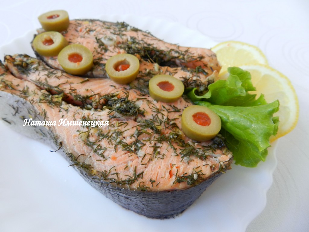 Предлагаю рецепт приготовления в духовке запеченных стейков форели в лимонной заливке. Очень ароматный соус, в котором маринуется и запекается рыба, придает ей особый вкус.  Таким образом можно приготовить не только форель, но и другую красную рыбу, например, семгу или лосося.