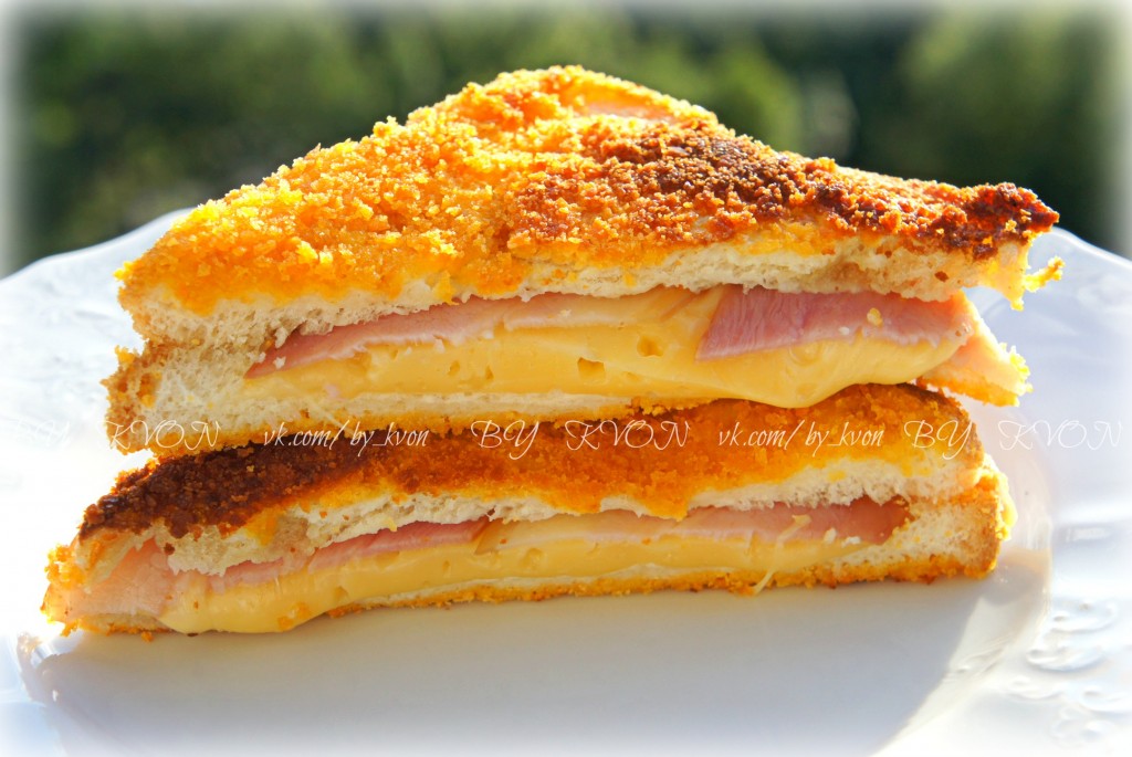 Обжариваем бутерброды на сковороде на разогретом масле с двух сторон до золотистой корочки. Выкладываем горячие бутерброды на бумажные полотенца, чтобы удалить излишки масла.