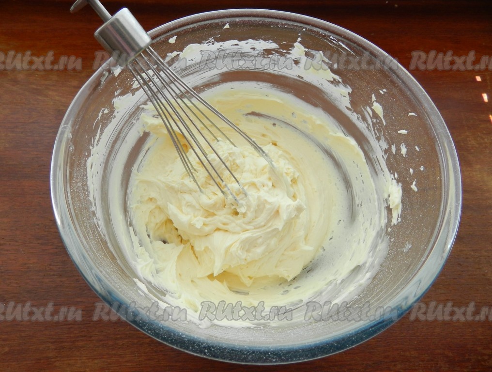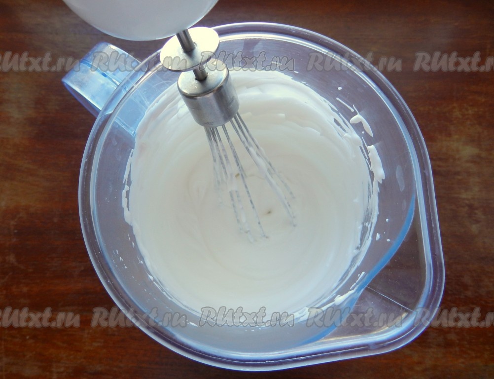 Хорошо охлаждённые сливки взбить с сахарной пудрой в густую массу на максимальных оборотах миксера.