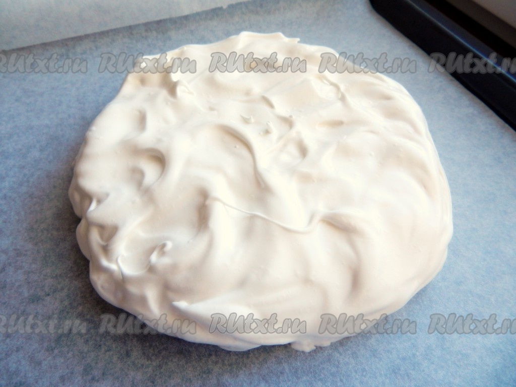 Взбитые белки выложить на отмеченный круг на бумаге для выпечки.