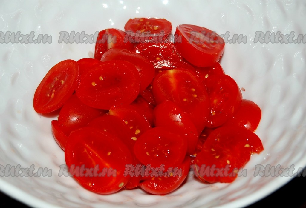 Затем нарезанные помидоры.