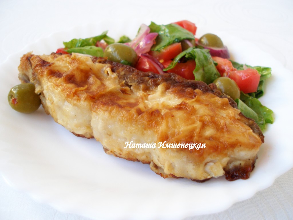 Очень вкусный жареный толстолобик готов, его прекрасно дополнит салат из свежих овощей.
